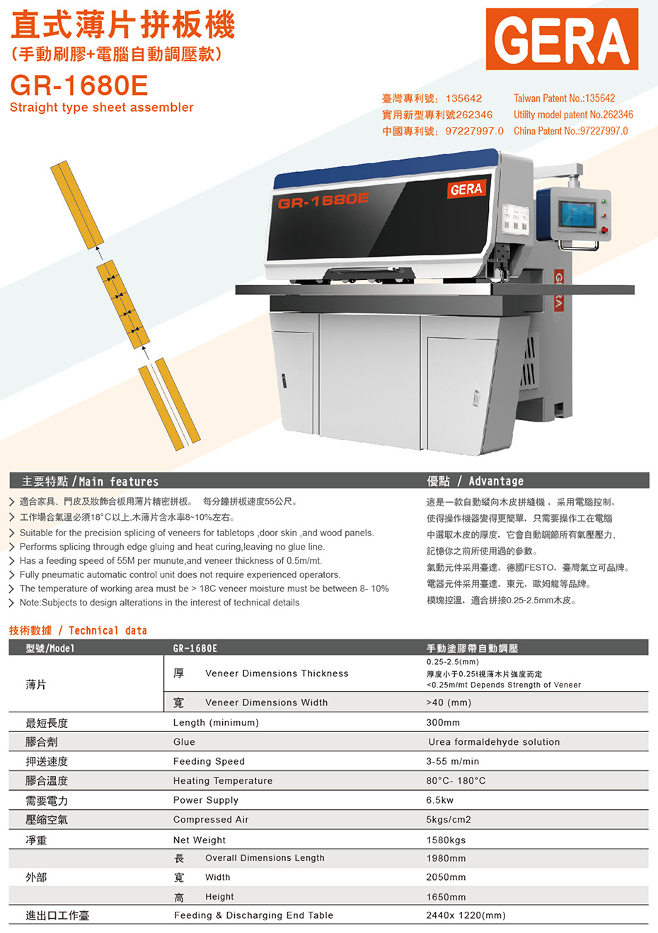 直式薄片拼板机(手动刷胶+电脑自动调压款) GR-1680E